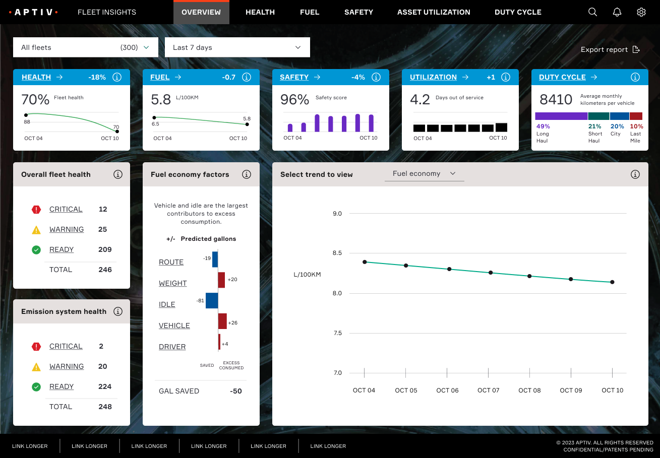 Trucking fleets need solutions that help improve uptime, increase efficiency and reduce costs. Aptiv Connect Pro not only provides rich, high-fidelity data, but also translates that data into valuable fleet insights. And it integrates with the fleet telematics solutions that fleet managers are already using.